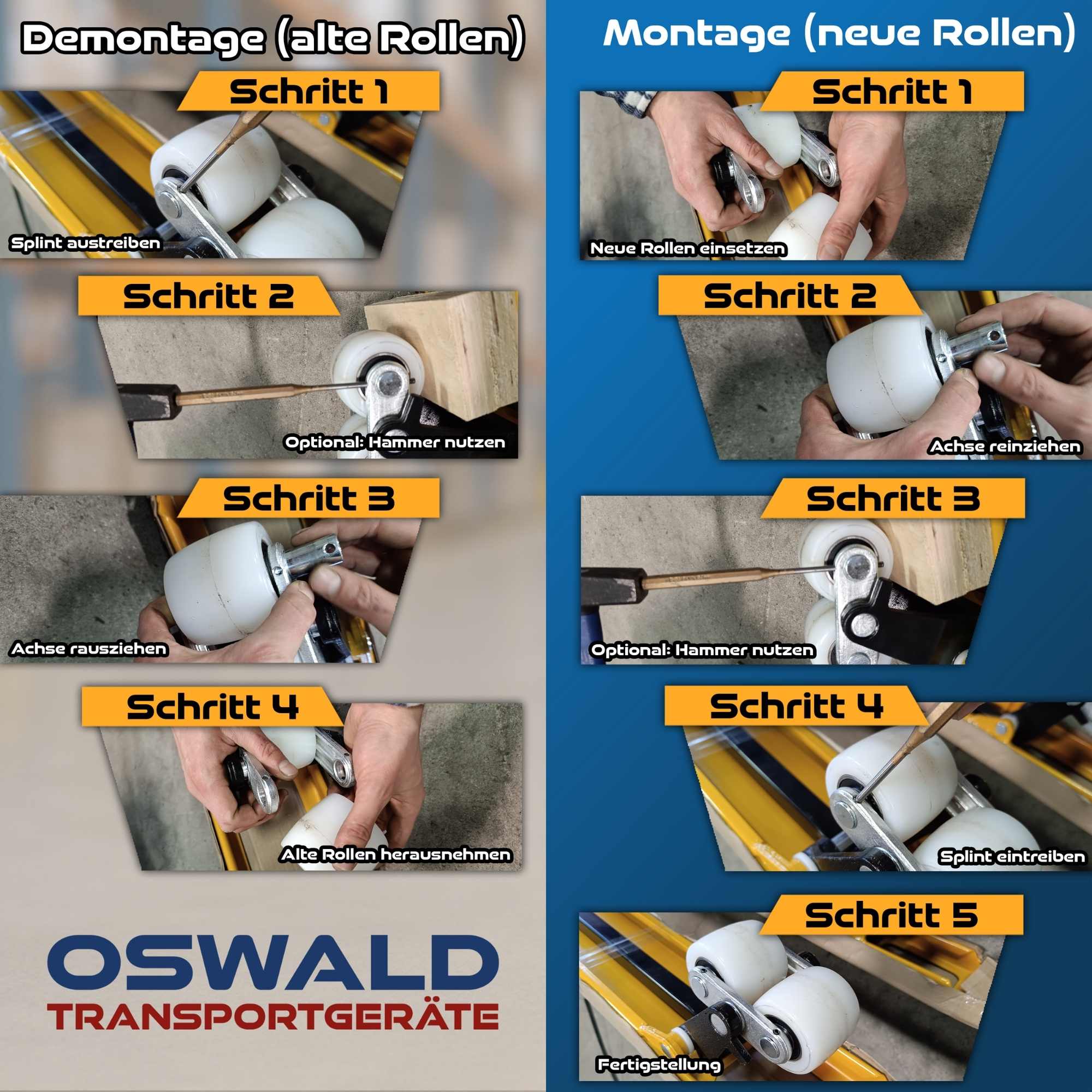 4 Stück Hubwagenrollen Polyurethan barun 80 x 70 mm